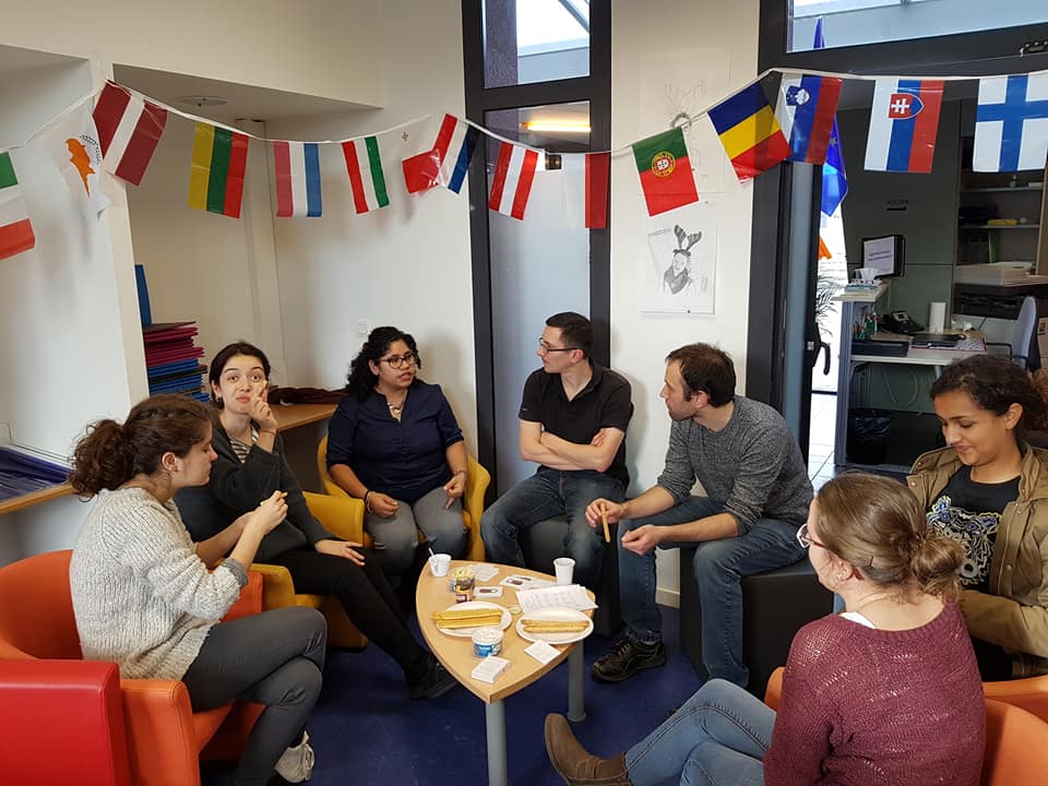 Notre idée de Café des cultures itinérant n’est autre que de parler de l’Europe d’une façon attirante pour le grand public en Normandie. Nous proposons des échanges culturels avec les volontaires européens, des jeux sur l’Europe et même des débats sur les sujets actuels qui concernent à l’Union Européenne.